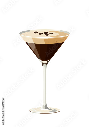 Espresso Martini in a martini glass with coffee beans on top against