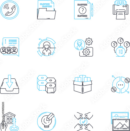 Establishment linear icons set. Institution, Foundation, Setup, Building, Infrastructure, Association, Organization line vector and concept signs. Corporation,Company,Industry outline Generative AI
