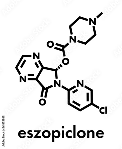 Eszopiclone hypnotic drug molecule (sleeping pill). Skeletal formula.