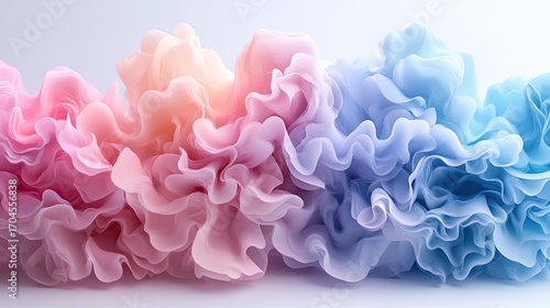Ethereal gradient wave composed of flowing pastel fabrics against white backdrop