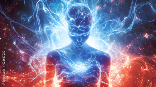 Ethereal Human Figure Surrounded by Electric Energy