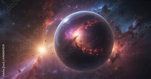Ethereal orb, cosmic dust swirls, nebula backdrop, glowing, radiant, design