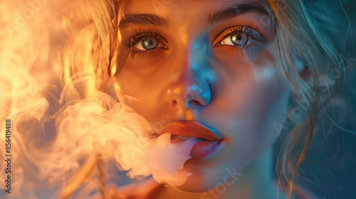 Ethereal Portrait of Young Woman with Smoke in Warm and Cool Light