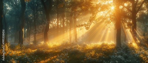 Ethereal Sunrise in Majestic Forest Landscape