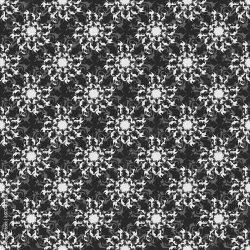 Ethnic black and white modern abstract Textile seamless pattern facture, texture background.Creative seamless abstract geometrical shape flower pattern. gray pattern with black background.