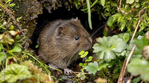 European Common Vole, Captured in a Detailed and Naturalistic Style, Showcasing the Small Rodent’s Distinctive Features and Habitat
