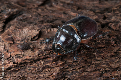 European rhinoceros beetle (Oryctes nasicornis) portrait, Italy.