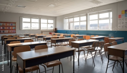 Exam examination room or hall set up ready for students to sit test