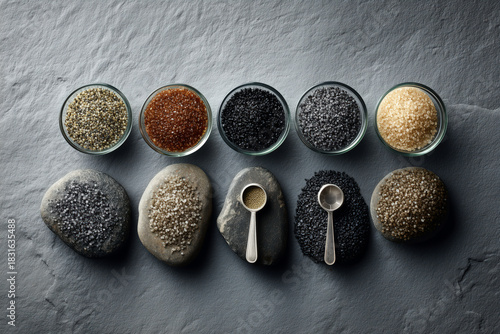 Exotic sea salts offer a culinary journey, perfect for artisanal food concepts and gourmet ingredient promotions, a visual feast for foodies and chefs.