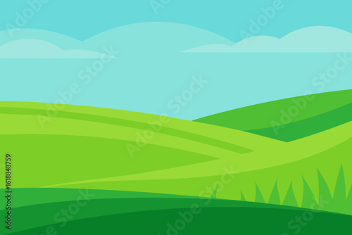 Expansive Illustration of a Sunny Countryside Digital Art Landscape