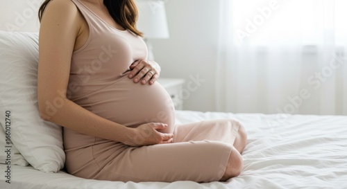 Expecting Mother Gently Holding Baby Bump, Pregnancy Photo
