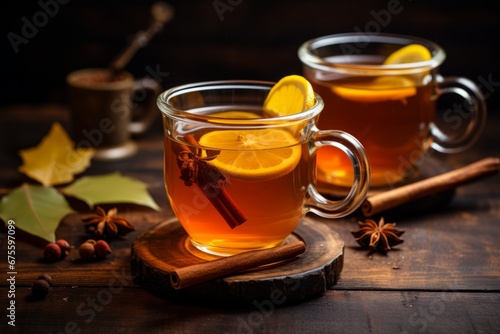 Experience the warmth of fall with a homemade Hot Toddy served amidst colorful leaves and flickering candles on an old wooden table