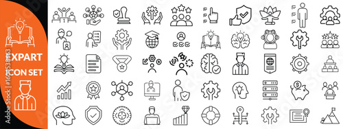 Expert line icon set. Set of outline icons related to talent, skill, aptitude, specialist, thinking, expertise, expert and others. Editable stroke. Vector illustration