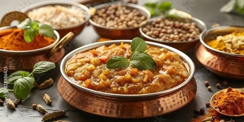 Exploring the Aromatic Spices in Indian Cuisine: Cardamom, Cumin, and Turmeric in Curries. Concept Indian Cuisine, Aromatic Spices, Cardamom, Cumin, Turmeric, Curries