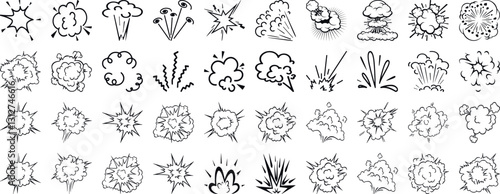Explosion icon set, bomb blast illustrations, explosion graphics, nuclear explosion symbols, comic explosion art vecto