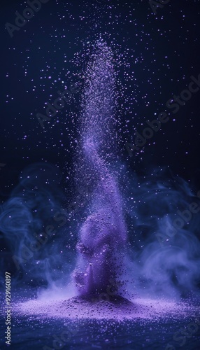 Explosion of Purple Powder on a Black Background, Purple Dust Cloud, Abstract Background.