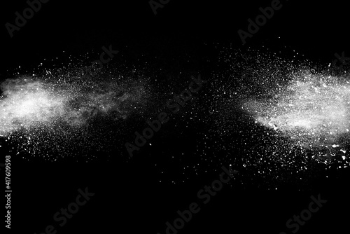 Explosion of white powder isolated on black background. Abstract colored background. holi festival.
