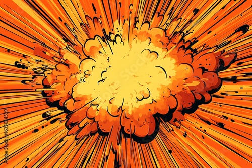 Explosive Burst with Radiant Flames and Dynamic Shockwaves in Motion