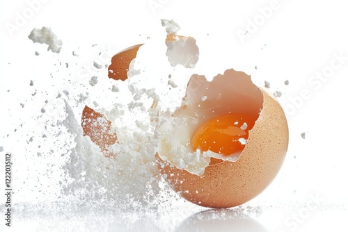 Explosive Eggshell with Splattered Egg White and Yolk on White