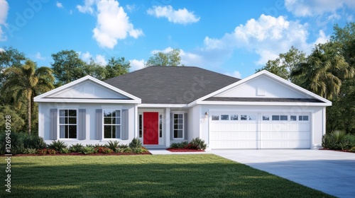 Exterior of a modern house, sunny day, suburban landscape, ideal for a stock photo
