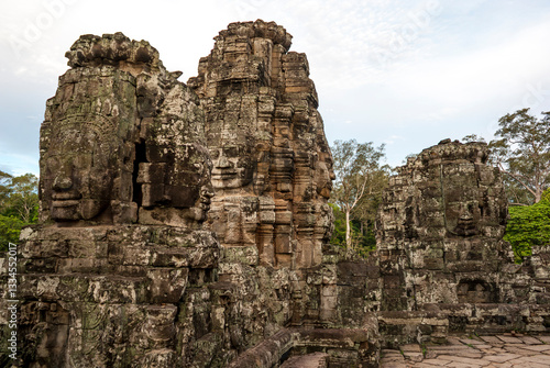 Exterior of the Bayon temple with gargantuan faces, Angkor Thom, Angkor, Cambodia, Asia
