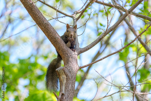 Ezo Squirrel on a Branch in Early Summer, Hokkaido, Japan