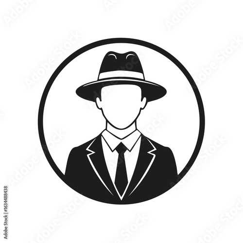 Faceless Figure with Suit and Hat in Circle, Avatar Illustration, Vector Graphic
