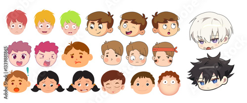 Faces of girl and boys with emotions