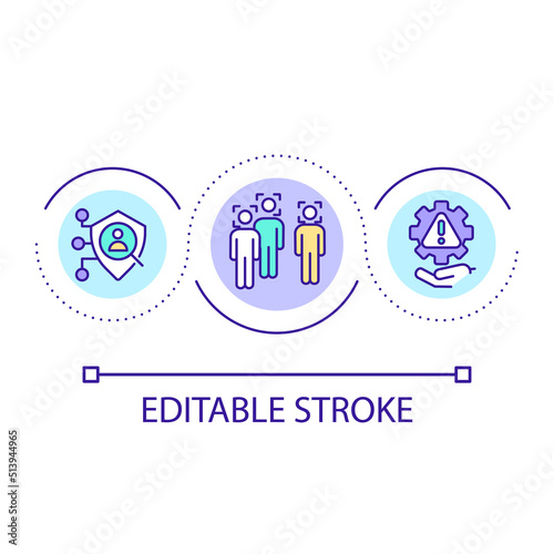 Facial recognition system loop concept icon. Biometric authentication abstract idea thin line illustration. Reducing security risks. Isolated outline drawing. Editable stroke. Arial font used