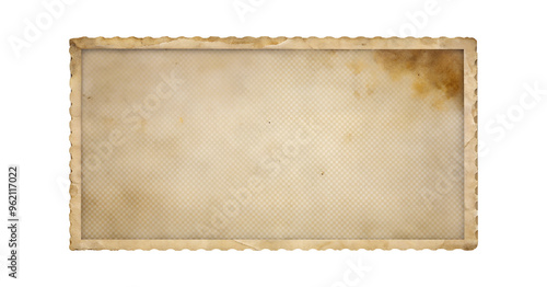 Faded vintage postcard with worn edges, cut out transparent