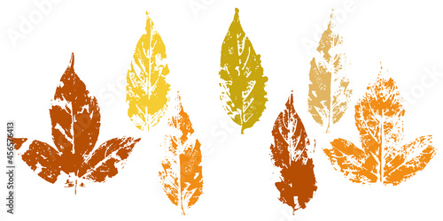 fallen autumn leaves vector set stamps of natural leaves paint on paper.