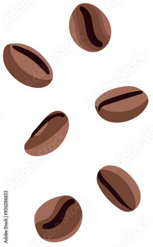 Falling Roasted Coffee Beans Illustration Isolated on White Background