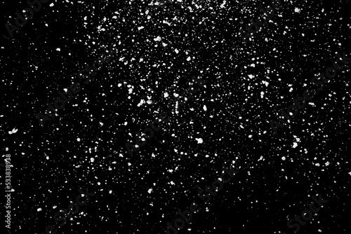 Falling snow isolated on black background Overlay texture Snowstorm
