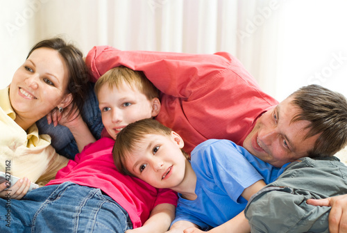 family lying on the carpet