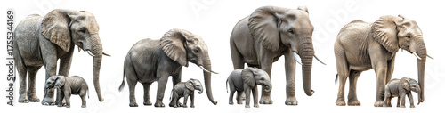 Family of Elephants Walking Together in Natural Habitat Display, Isolated on Transparent Background