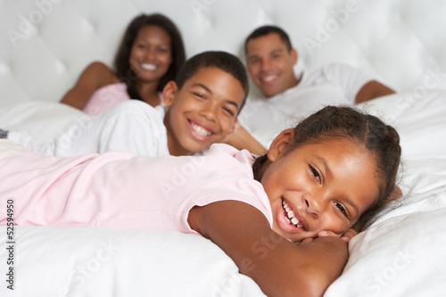 Family Relaxing In Bed Together