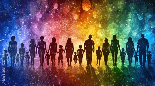 Family unity, colorful cosmos background, hope, future, stock photo