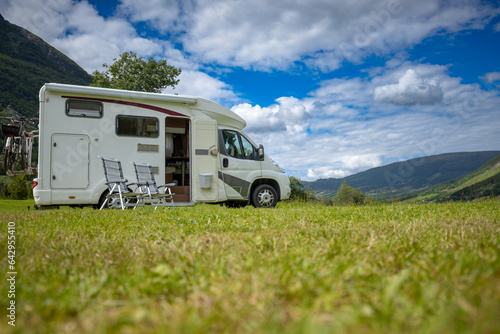 Family vacation travel RV, holiday trip in motorhome, Caravan car Vacation.