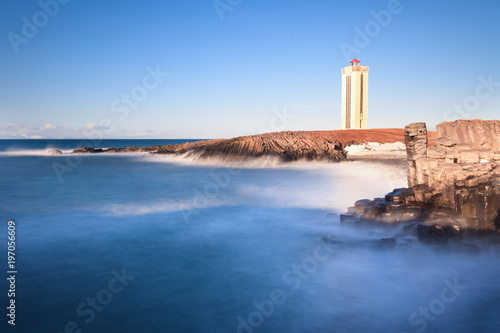 Famous light house in Iceland in winter