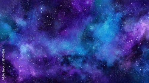 Fanciful Galaxy Sky with Vibrant Stars and Colorful Nebulas, Magical Cosmic Scenery, Clean Design