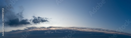 Fantastic clouds against blue sky, panorama