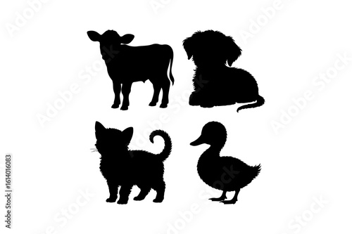Farm and domestic animal silhouettes on white background