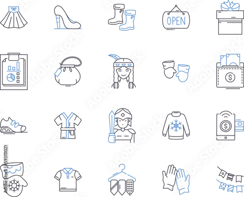 Fashion factory outline icons collection. Fashion, Factory, Garment, Clothing, Manufacturing, Textile, Style vector and illustration concept set. Design, Outfit, Sewing linear signs