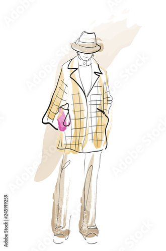 Fashion girl sketch. Fashion illustration. Drawing fashion model