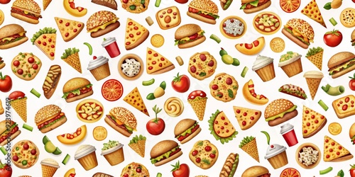Fast Food Fiesta A Watercolor Pattern of Burgers, Pizza, and More, watercolor , pattern , food , illustration