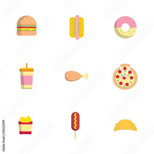 fast food flat icons set vector illustration