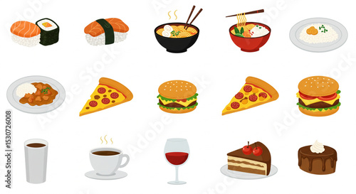 Fast Food Icons – Pizza, Burger, Cake, Coffee and Takeout Meals
