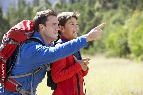 Father And Son On Hike In Beautiful Countryside