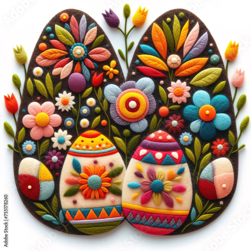 Felt art patchwork, Easter eggs with spring flowers, colorful holiday