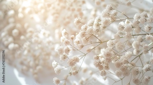 Feminine wedding desktop with baby's breath Gypsophila flowers.